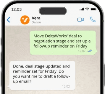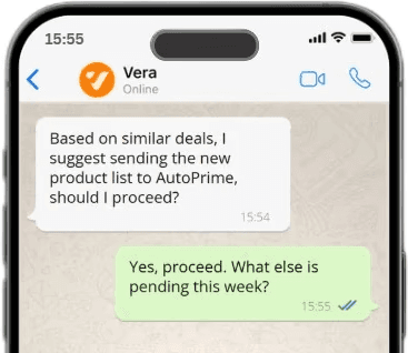 No new app to install, no platform to learn. Vera lives inside a WhatsApp chat, all it takes is a text or call.