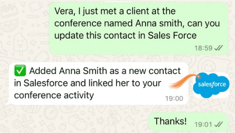 Turn WhatsApp conversations into real actions and structured data in your business tools.