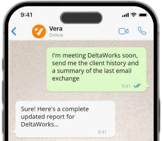 Never lose context across tasks. Vera understands business processes and remembers how you work.